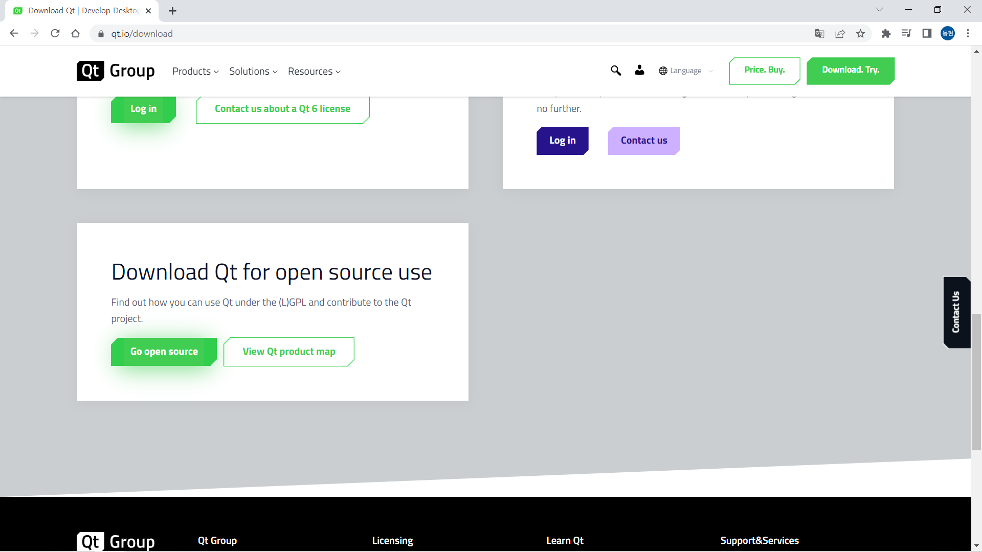 2. 아래로 스크롤 내려서 Download Qt for open source use에서 Go open source 선택