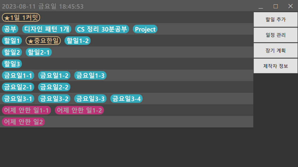 각 파일에 일정을 작성한다면 매일 프로그램 실행시 리스트에 반영됩니다.