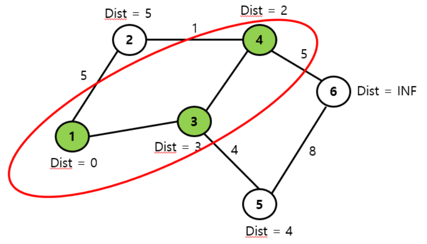 dist[1] = 0; // 시작점은 1번으로 선택