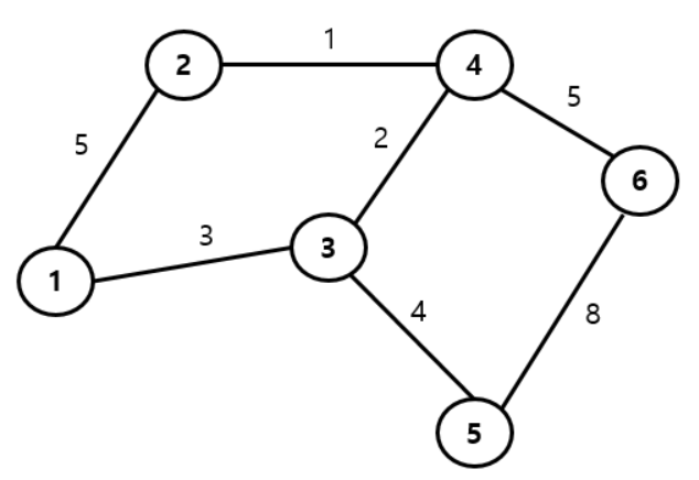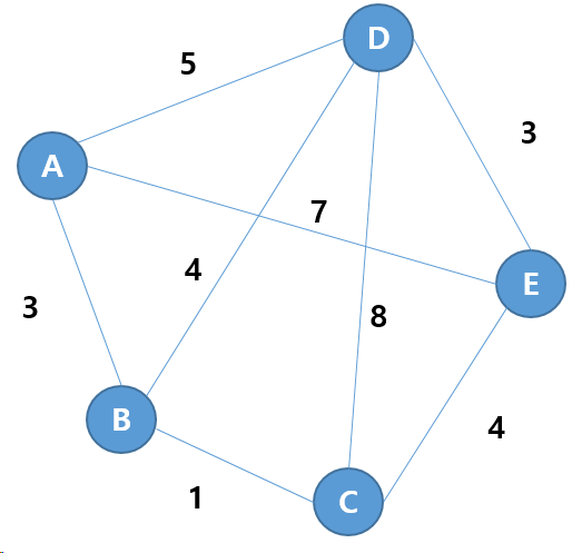 위와 같은 그래프에서 크루스칼 알고리즘을 사용한다.