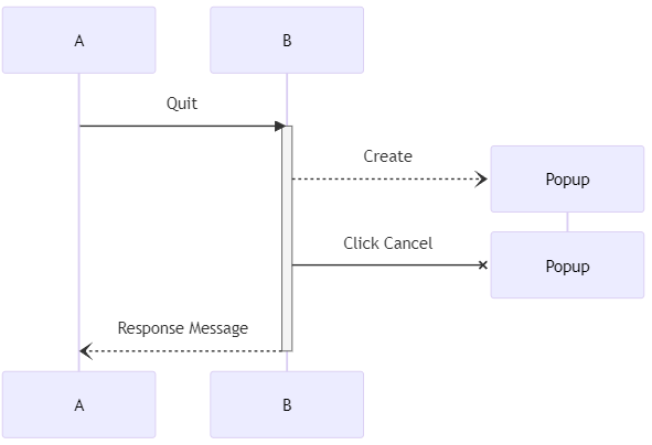 A->>B : Quit