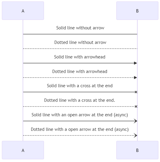 A -->> B : Dotted line with arrowhead