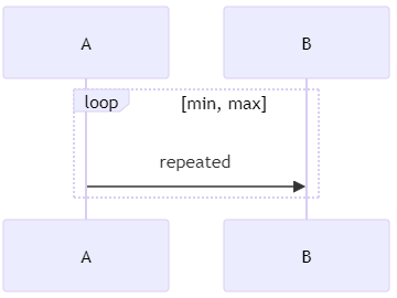 아래의 시퀀스 다이어그램의 경우 최소 min번, 조건이 맞다면 최대 max번 반복된다는 뜻이다.