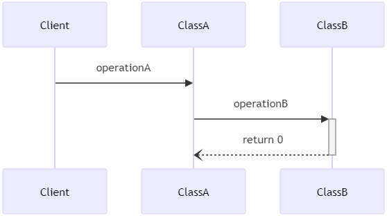 ClassA가 ClassB객체를 operationB로 호출한 후 0을 return한다.