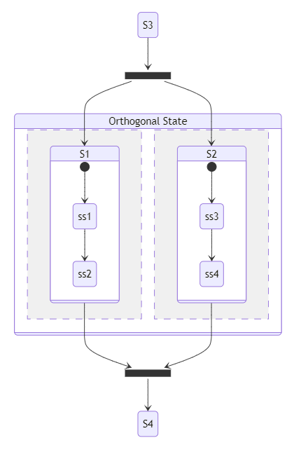 위의 상태 다이어그램의 경우 상태에 진입시 S1, S2, S3 상태를 모두 동시에 가지며 동시에 실행한다.