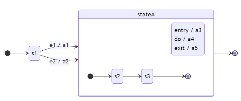 stateA에 진입하면 entry행동으로 a3를 수행한 후 s2상태에 놓인다.