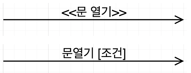 첫번째 화살표는 그냥 문열기 동작을 하면 상태가 바뀐다는 뜻이 되고