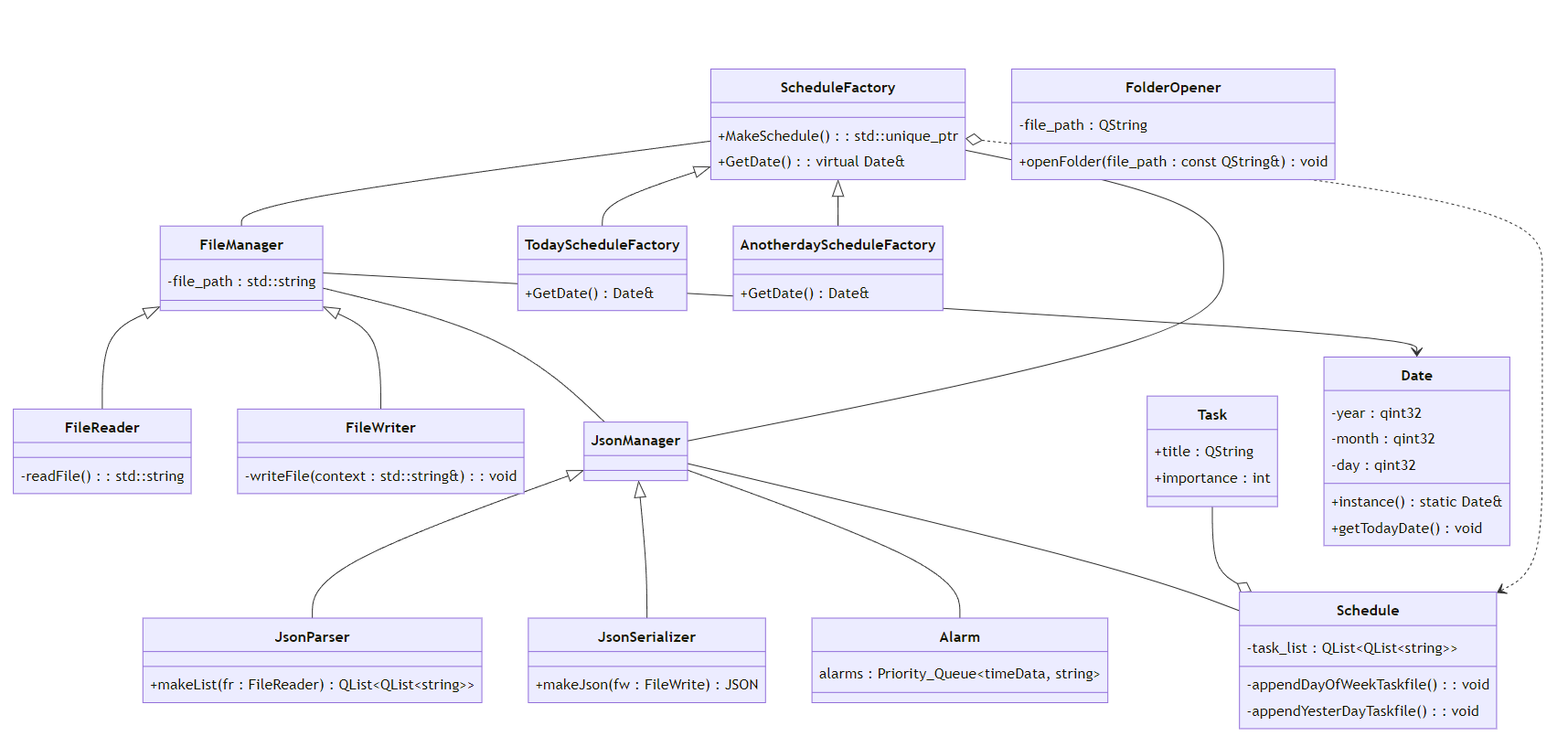 JsonManager - ProgramInfo 또한 JsonManager - TaskListManager (마름모 꼴)