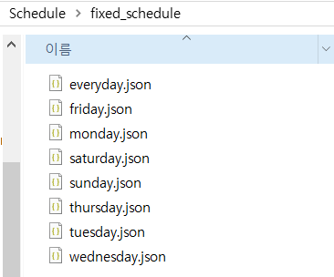 Schedule이 담겨있는 json파일을 어디에 둬야할지 좀 헤맸다.